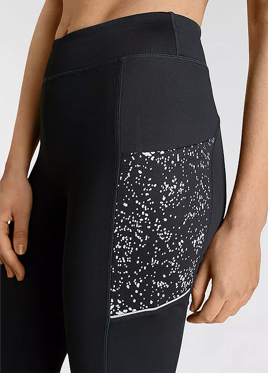 Look sporty and stylish with these Reflective Print Elasticated Waist Straight Leg Sweat Pants from active by LASCANA. They feature a reflective print for extra visibility, an elasticated waist for comfort and a phone pocket so you can carry your essentials while on the go. Get ready to hit the gym or just lounge around in style. Elasticated waistband with drawstring. Reflective print.