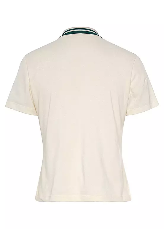 A versatile tennis t-shirt with contrasting detail, short sleeves and polo collar with a button placket. Finished in a soft cotton fabric. Polo collar with button placket.