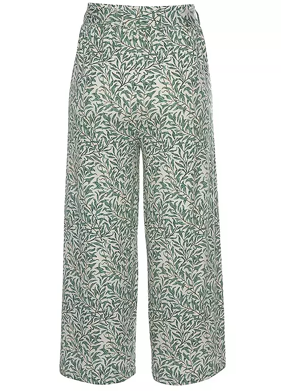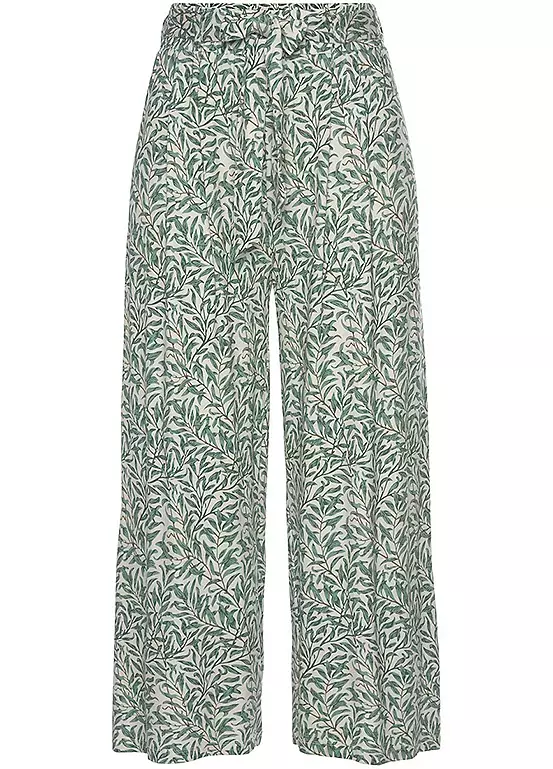 Airy culottes by Beach Time with an all-over pattern. Slightly raised waistband with belt loops and tie strap. Wide-cut trouser legs. Can be combined in many ways. Soft flowing viscose quality. All-over leaf printed. Tie belt at the waistband. 7/8 length. 95% Viscose, 5% Elastane.
