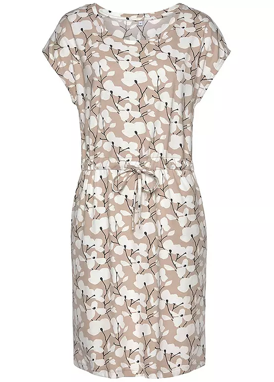A trendy summer dress by Beachtime in an all-over floral print with short overcut sleeves and a round neckline. Made from soft jersey material, it features a drawstring at the waist and side pockets.