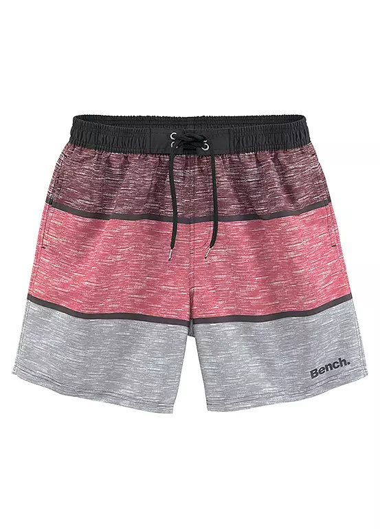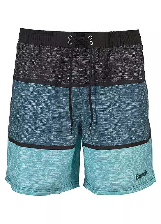 Swimming shorts in a block stripe design with an elasticated waistband, outer tunnel drawstring and slit pockets at either side. Inner briefs and small secret inner pocket. Side length in size M length approx. 44 cm (17¼ ins).