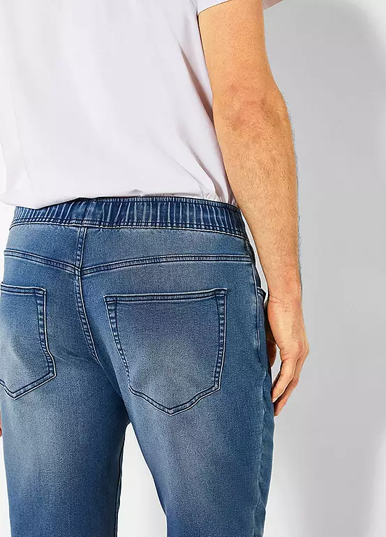 The perfect combination of style and comfort. These denim jogging pants by Bench are super stretchy and provide comfort every day. Featuring side pockets and a turned-down stretch waistband with drawstring.