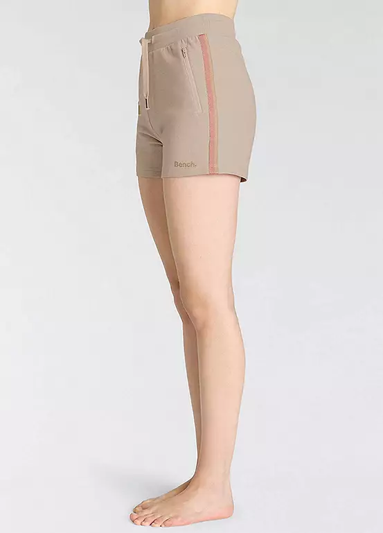 The relaxed shorts are made of a soft, slightly brushed and stretchy sweat fabric that is super comfortable, and feature a drawstring waistband and zipped pockets. Side glitter stripe. Elastic waistband with drawstring. Machine washable. 95% Cotton, 5% Elastane.