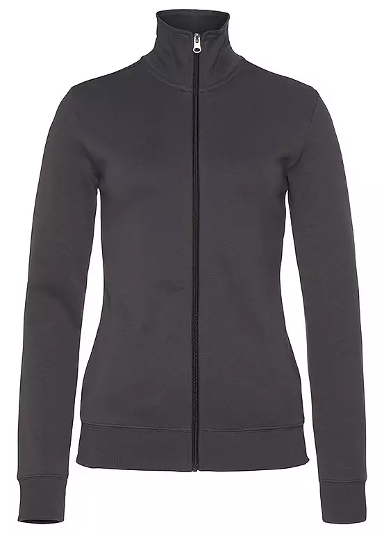 A casual sweat jacket in a soft cotton blend with a logo print and embroidery. Finished with a high collar and practical side pockets. Practical pockets.