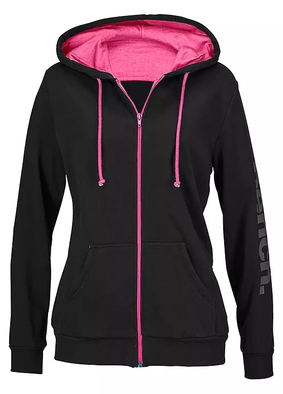 With contrast inner lining and tonal printed logo on sleeve, side pockets and ribbed trim. Made from sweatshirt material, softly textured on the inside.