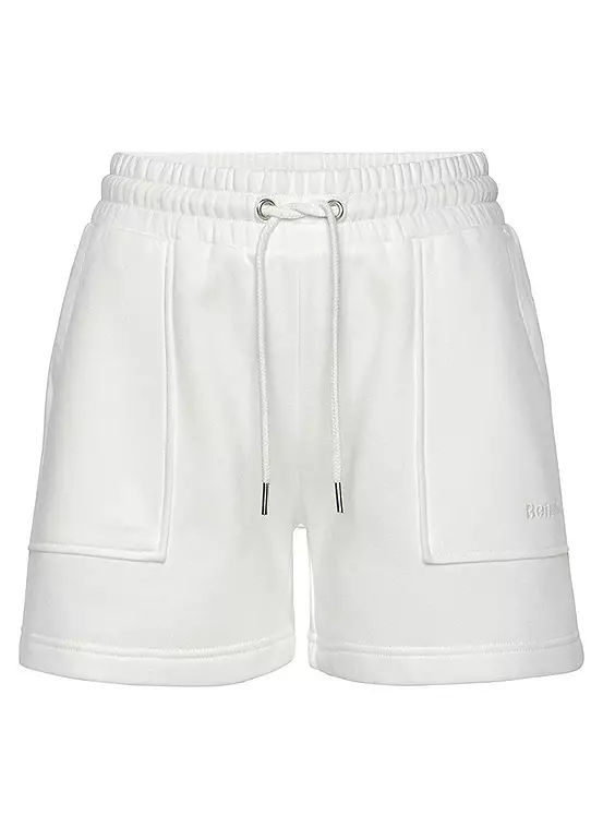 Perfect for lounge wear, these shorts are in a comfortable fit that is secured by the elastic waistband. Equipped with large patch pockets and a tone-on-tone label embroidery on the side. The small label flag on the side seam rounds off the design. Adjustable waistband. Flag label on the side seam. Slightly flared shape. Machine washable. 65% Cotton, 35% Polyester.