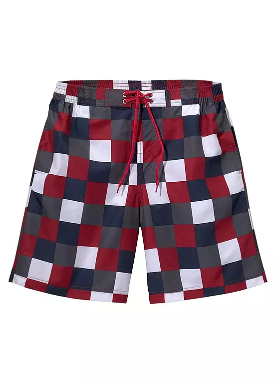 Super cool swimming shorts featuring an awesome bold checked print. Featuring an elastic waistband with a drawstring and two front pockets. A stylish choice for the beach or lounging by the pool.