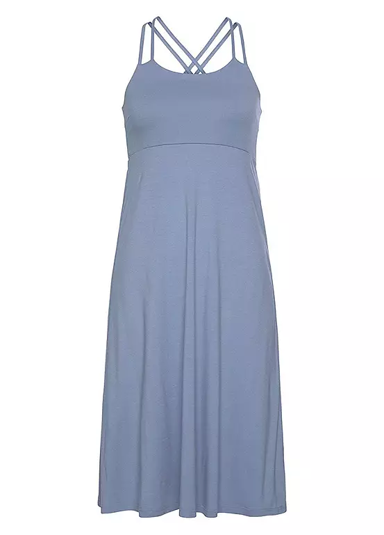 This dress stands out, thanks to the double spaghetti straps cross at the back and tie. The skirt part falls straight down and gives you a lot of freedom of movement. The soft viscose material is perfect for warm summer days. Pair with flat sandals for a great summer look. Straps crossed at the back Ribbons to tie on the back Straight skirt part Soft flowing viscose fabric