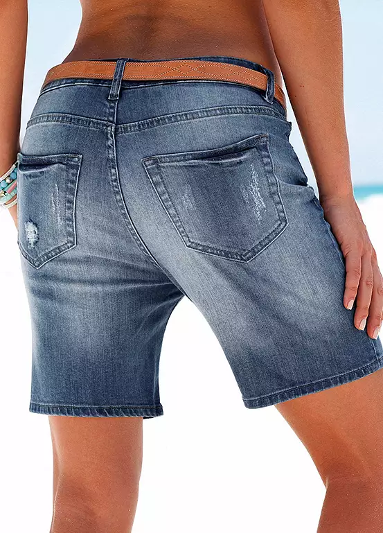 Worn look shorts in a light distressed effect, in a slightly longer style which is ideal for rolling up. In a five-pocket style with belt loops and a zip and button fastener. Inside leg approx. 17.5 cm (7 in)