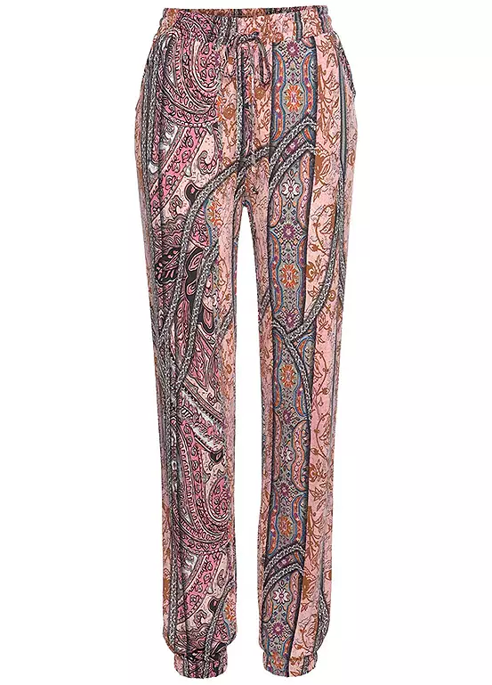 Paisley is making a comeback! These fashionable printed beach trousers come in a loose fit straight leg design with side pockets. The trousers come crafted from a soft flowing fabric with an elastic waistband with decorative cord. Team with a pair of strappy sandals and a silk blouse for a great look.