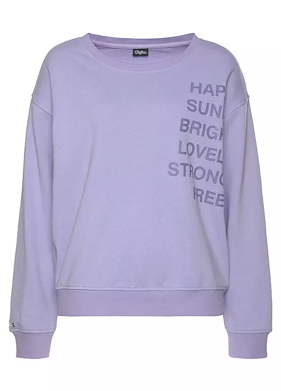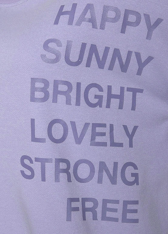 A long sleeve sweatshirt in a relaxed fit with dropped shoulders and a stylish slogan print. Finished in a soft cotton blend with ribbed cuffs, this piece is perfect for both lounge wear and a casual weekend look teamed with jeans or leggings.