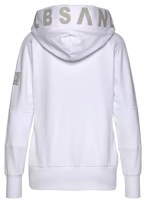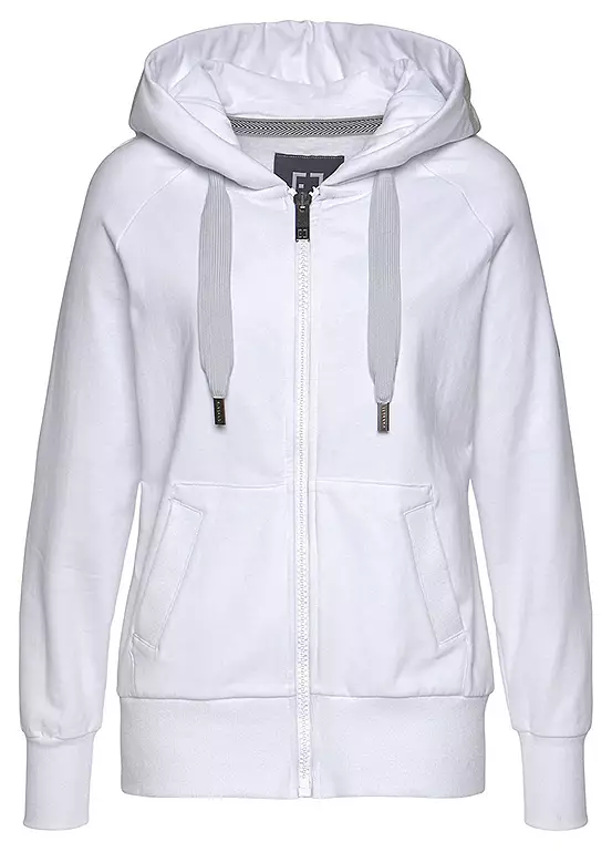 Hooded sweat jacket with a drawstring hood and a wide logo print. Finished with a zip at the front, side pockets and logo detail on one sleeve. Length approx. 70 cm.