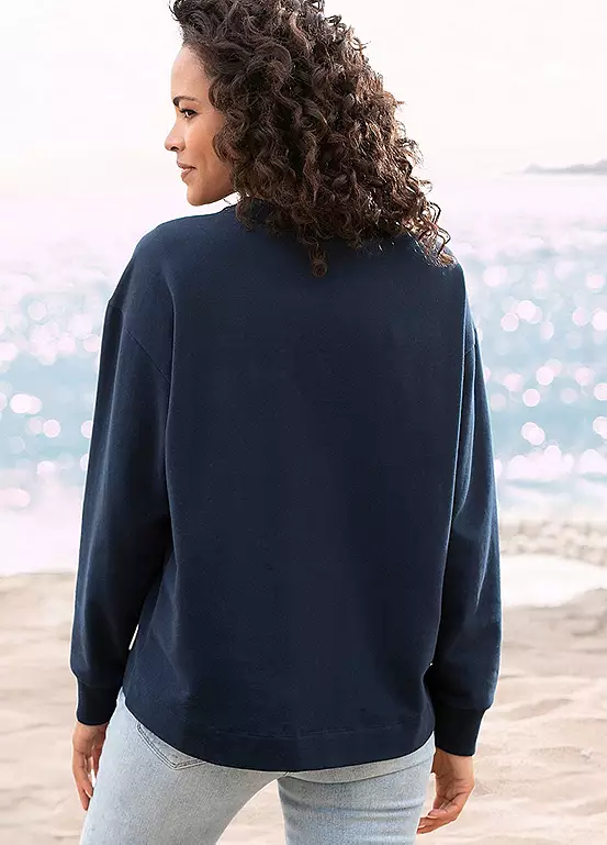 Sweatshirt by Elbsand. With a large flock print on the front. Dropped shoulders. ribbed cuffs. crew neck. Can be combined in many ways. Made from soft sweat fabric. Round neckline. Dropped shoulder. Logo lettering. 95% Cotton, 5% Elastane.