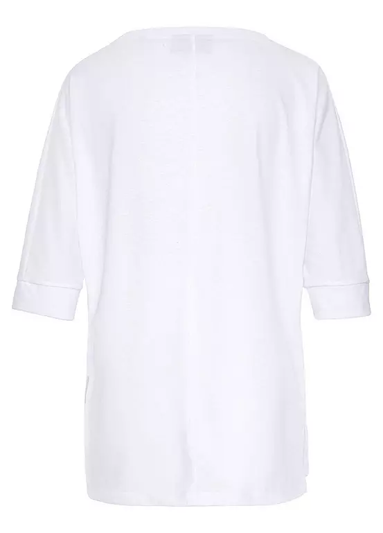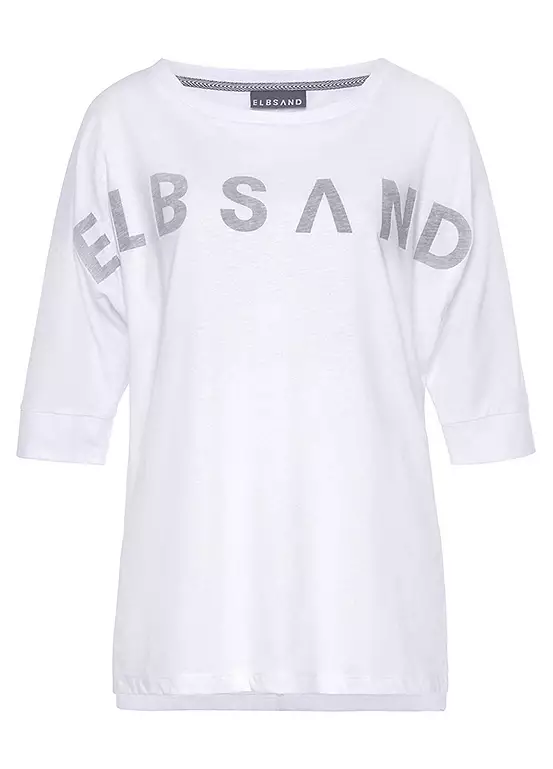 The perfect piece for a cosy outfit, this oversized top features particularly soft material in a cotton blend, a round neckline and wide, three-quarter length sleeves. Finished with a large logo print on the chest. Round neck. Oversized fit. Logo print. Soft cotton blend.