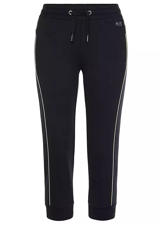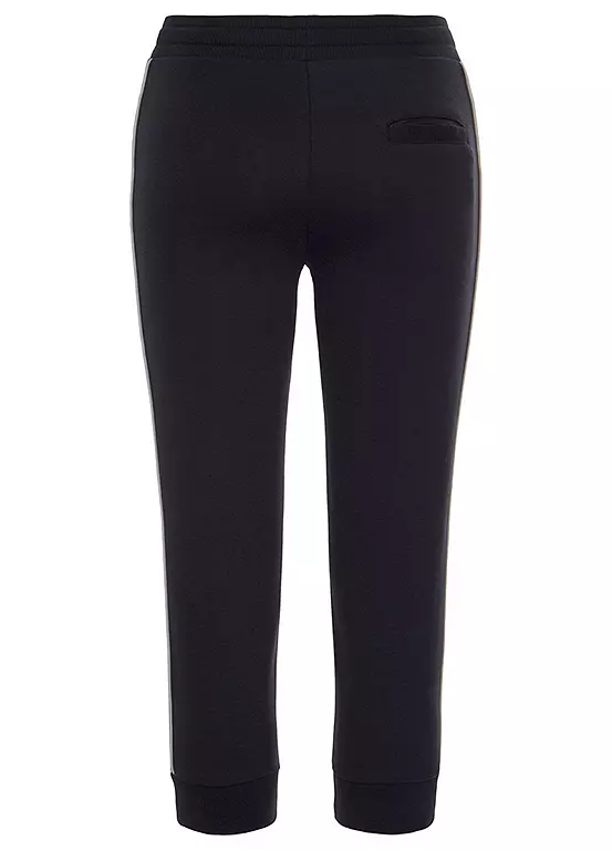 A great pair of Capri sweat pants are always an essential part of your wardrobe. Their cropped length are so cosy and comfortable! The high-quality cotton content and an individually adjustable drawstring waistband plus slightly angled, colour-contrasting piping on the side of the legs and a small brand logo on the left side provide style and comfort. Finished with wide ribbed cuffs at the bottom of the hem. Team with a chunky jumper.