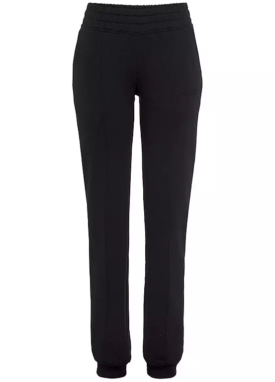 Classic figure-skimming jogging pants from H.I.S with a wide, elasticated waistband and side pockets. Made from a cotton and viscose blend with a softly brushed inside, they feature brand embroidery and dividing seams at the front. With piping at the front of the wide leg. Made from a soft cotton blend, brushed on the inside.