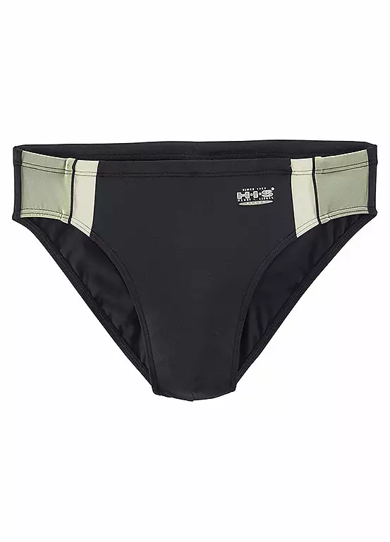 Trendy swim trunks with coloured side inserts, front logo print and small inner pocket.