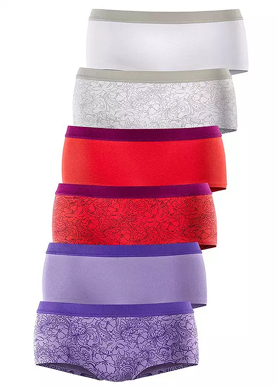 In a pack of six, these short briefs will keep you going for almost a whole week, allowing you to throw on your finest pair for a Saturday evening. They’re designed with a wide, elasticated waistband in a contrasting colour and each pack contains three printed and three plain shorts. Colour mix 1: 2 Purple, 2 White & 2 Red. Colour mix 2: 2 Pink, 2 Green & 2 Blue.