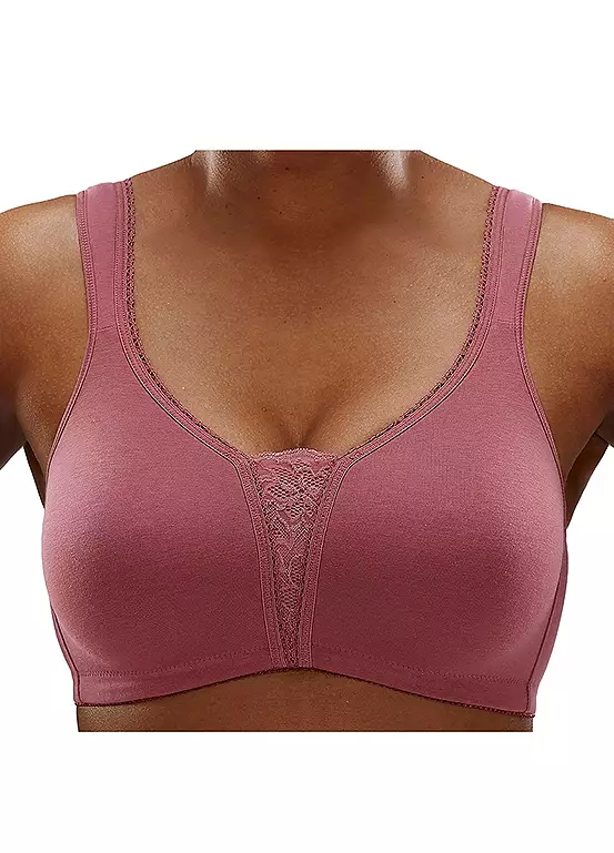 These elegant non-underwired bras have seamless, preformed cups plus wide, padded straps for a perfect fit. Featuring a beautiful lace insert at the mid front. Adjustable straps and back fastening.