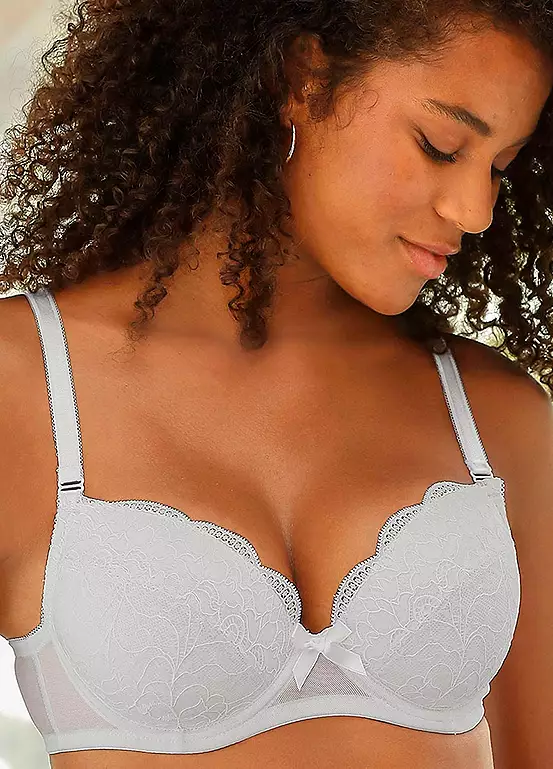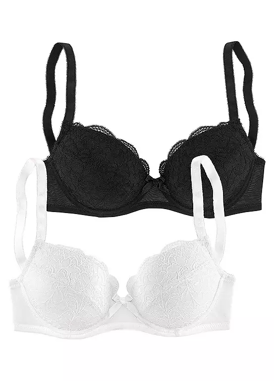 Pack of two balconette bras in a romantic design with pretty embroidered lace and a bow between the cups. Mesh material on the back rounds off the feminine design and formed cups with shaped underwire provide all the support you need. Adjustable straps and a back fastener provide extra comfort.