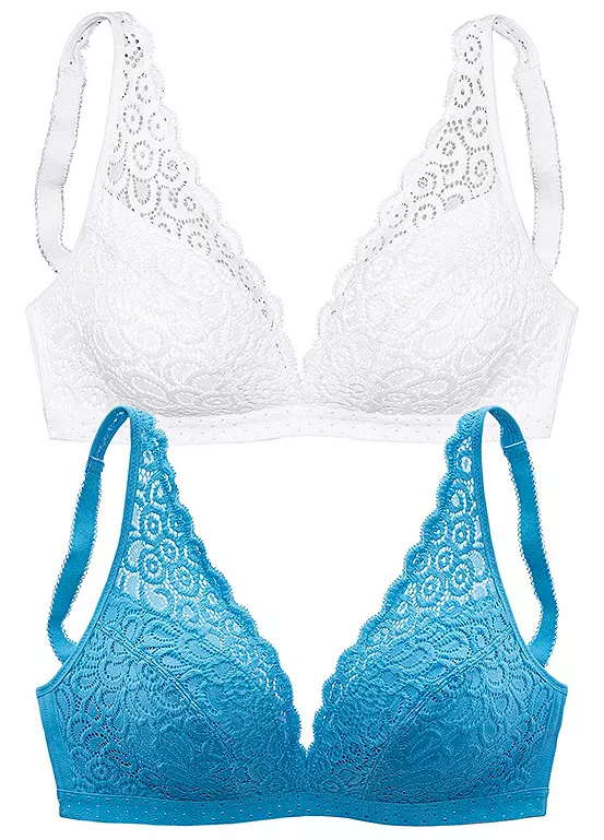 This pack of two bralette bras is the easy way to a great cleavage! With lightly lined cups adorned with delicate jacquard lace, and comfortable straps, with back support and adjustable closure.