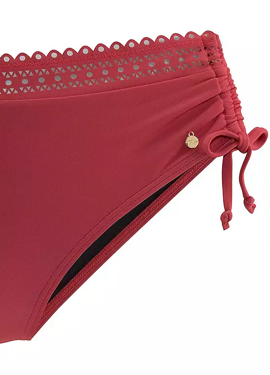 The bikini bottoms from s.Oliver offers a fashionable laser-cut edge on the waistband. It is also individually adjustable on the sides. The soft microfiber quality of the bikini bottoms lies comfortably on your skin. Thanks to the Mix-Kini principle, you can simply choose what you feel like. Laser-cut edge on the waistband. Soft microfibre quality. Hand wash. Outer material: 84% Polyamide, 16% Elastane. Lining: 92% Polyester, 8% Elastane.