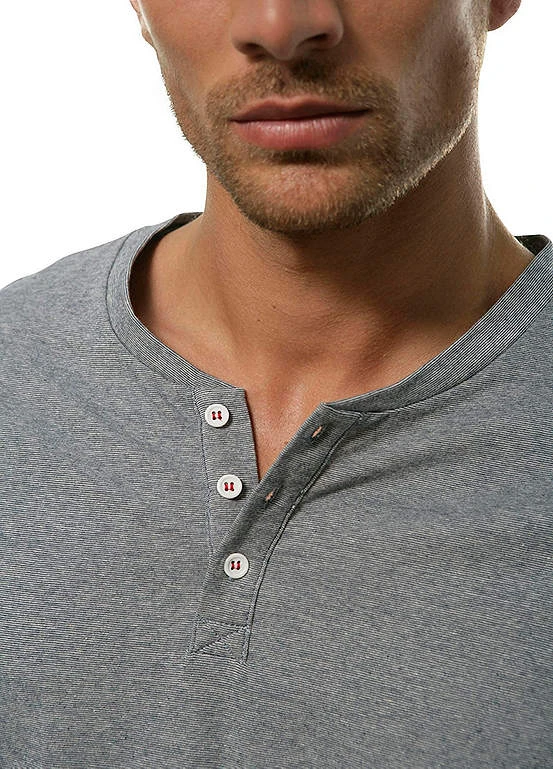 Classic and timeless pyjamas featuring a long sleeve marl top with a round neckline and a three-button placket. The pyjama bottoms come in a single colour, a relaxed cut and have an attached woven waistband and open side pockets.