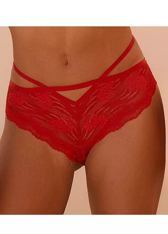 Feminine briefs that combine an extravagant design with a high level of comfort. The front is made of fine lace with a floral look, which ends in a pretty lace border at the leg ends and ribbons that gently flatter the silhouette and skilfully highlights the feminine figure. The seductive cut-out in the centre front adds a sensual touch. Thanks to the soft microtouch material in the back and the integrated cotton gusset, these briefs ensure plenty of comfort.