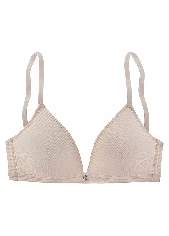 This bralette cleverly combines comfort and a fashionable design. Due to the soft material, the seamlessly preformed cups feel comfortable against the skin while the design is non-wired and complete with fashionable details such as a small metal accessory in the centre front. Finished in a minimal striped effect with subtly transparent soft mesh. Straps and back closure are adjustable for a perfect fit. Trendy triangle shape. Non wired.
