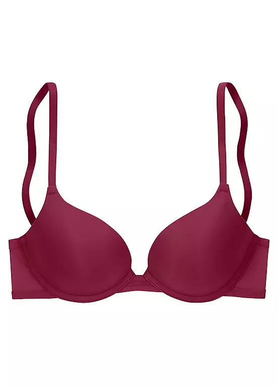 Underwired padded push up t-shirt bra with smooth cups, adjustable straps and hook and eye back fastening.