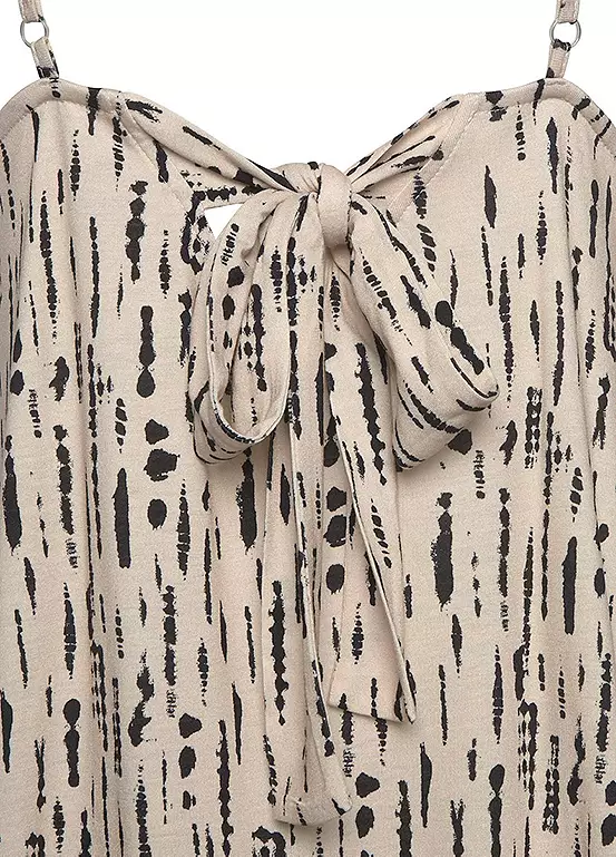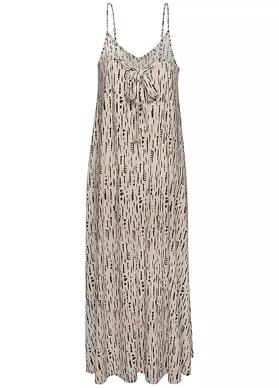 Summery maxi dress with a V-neckline and a sweet bow in the back. Featuring adjustable thin spaghetti straps. The fit is slightly flared. The fit is slightly flared. V-neck. Adjustable spaghetti straps.