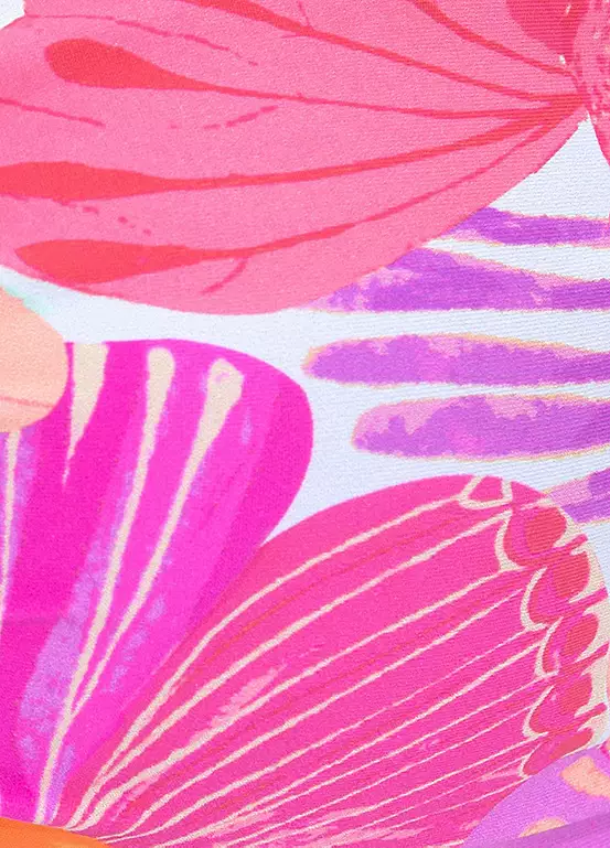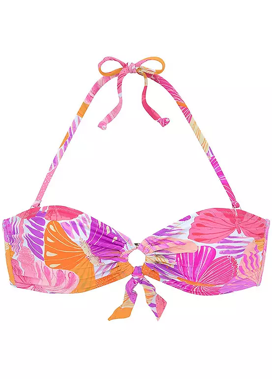 Bandeau bikini top in all-over print with removable soft cups and a detachable halter neck. Complete with shaping sticks for a stable hold. Made from easy-care material. Centre ring detail with decorative band. Removable soft cups. Side boning.