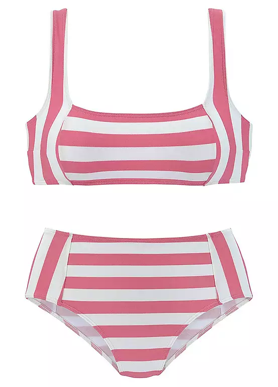 A Bustier bikini set by Venice Beach in a maritime-style stripe design. The top features removable soft cups for a beautiful decollete and closes in the back. The full briefs offer a slimming effect. Removable soft cups. Closes at the back. High-waist briefs. Removable soft cups. Closes at the back.