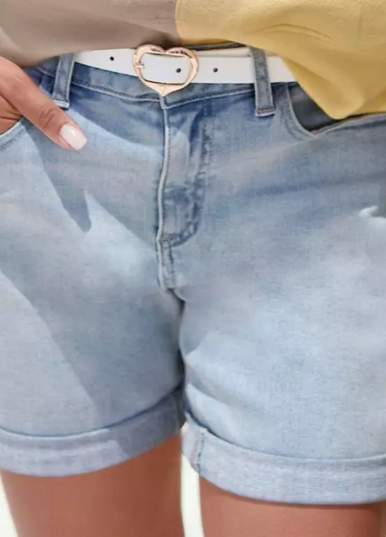 Casual denim shorts in a subtle washed look with roll up hems and a five pocket design. In a normal rise and a versatile design with high quality stretch denim. Normal rise. Five pocket style. Straight leg.