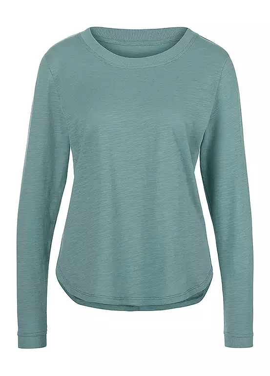 A casual long sleeve top by Vivance with a wide ribbed neckline and cuffs. Made from comfortable soft cotton, it comes in a slight marl look.