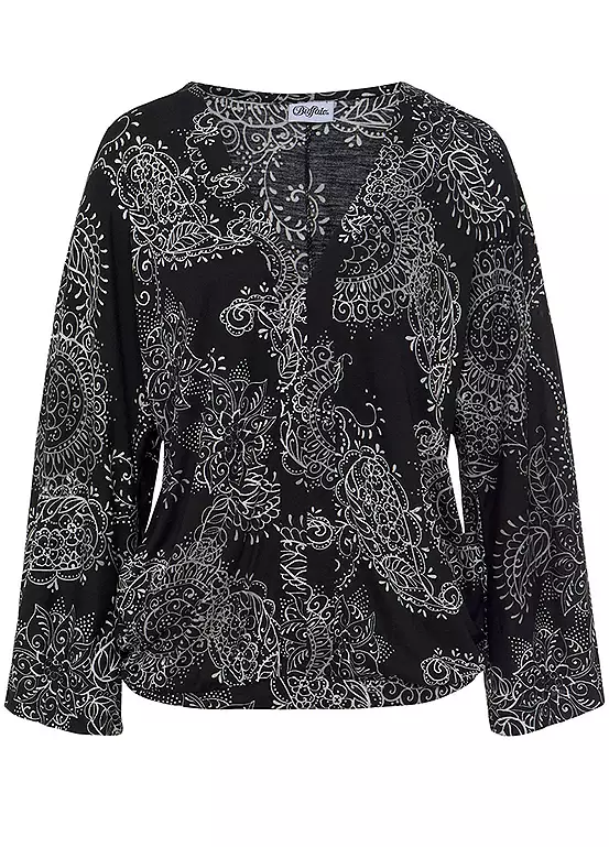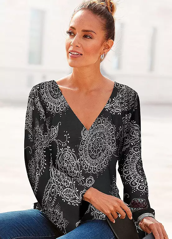 Beach shirt by Vivance with an all-over paisley pattern. Deep V-neckline, wide sleeves. Comfortable, relaxed fit. Can be combined in many ways. Soft quality made of viscose. Deep V-neckline. Quarter Sleeve.