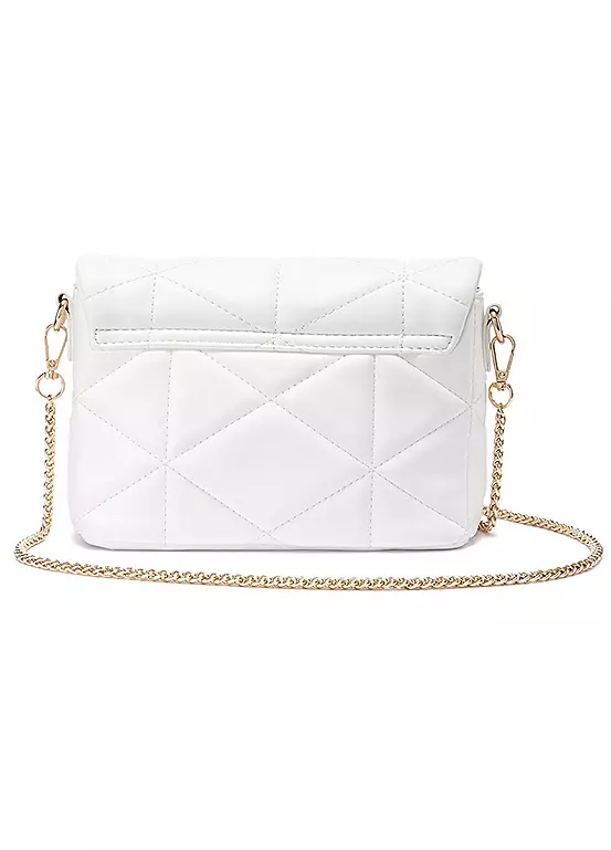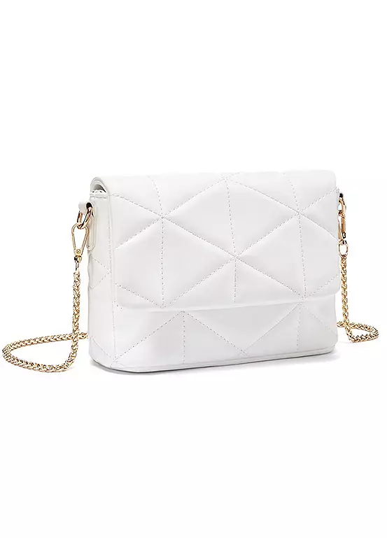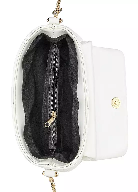 A stylish shoulder bag in a quilted design with a chain strap, a single button fastening and an inner zipped pocket. Perfect for on the go. Size approx. 14H x 21W x 8D cm.