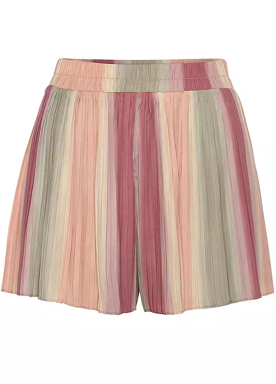 Stylish summer shorts with a high waist and a wide hem. In a relaxed fit with a subtle shiny, pleated fabric. Wide hem. High waist.
