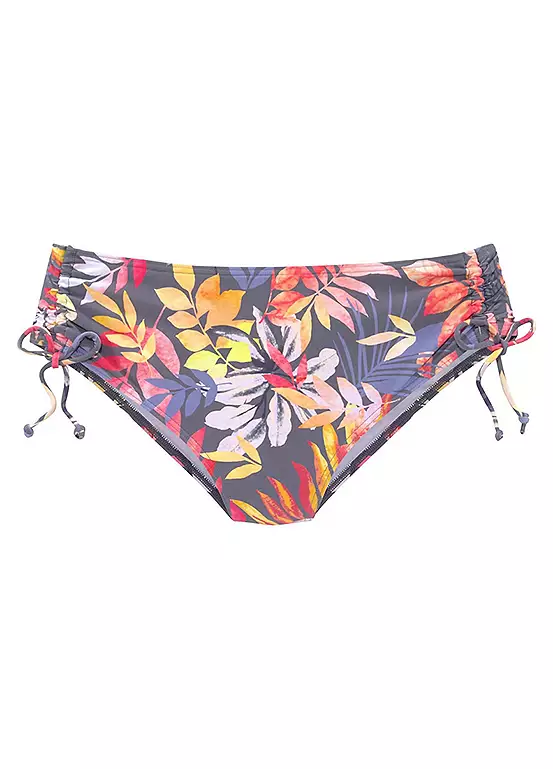 Bikini bottoms in a slightly higher cut that can be gathered at the side, while each pair is unique because the print is always slightly different. Mix and match to create your own beach look. Each piece is unique. Adjustable.